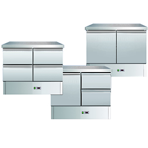 Die Kühltische der MAGIC Serie sind echte Verwandlungskünstler. Großer, voll nutzbarer Innenraum, da der Verdampfer im Gehäuse eingeschäumt ist und sich das Kühlaggregat im Sockel befindet.